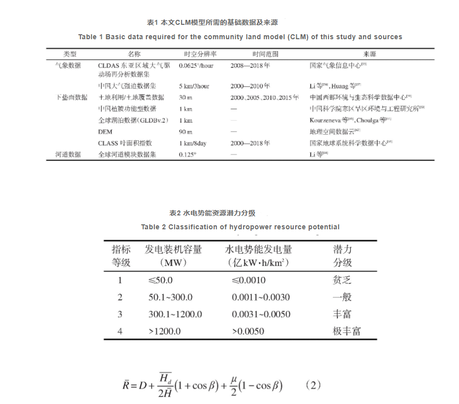 本文驅動CLM模型所用數據集如表1所示,水電勢能潛力評估的空間分辨率為1 km,時間為2000—2018年。
