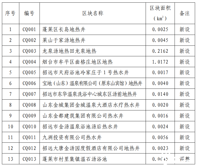 規(guī)劃期內(nèi),共設(shè)置地?zé)峥辈?/a>區(qū)塊2處,分別為山東省棲霞市惠禾·艾山地區(qū)地?zé)崞詹楹?a href="http://m.youbojiaoyu.com/t/山東.html" >山東省棲霞市長(zhǎng)春湖·霞光地區(qū)地?zé)崞詹椋斗艜r(shí)間為2022年。規(guī)劃地?zé)嶂攸c(diǎn)開采區(qū)1處,位于招遠(yuǎn)市東湯地?zé)崽?/a>。重點(diǎn)開采區(qū)內(nèi)要嚴(yán)格按照開采規(guī)劃區(qū)塊優(yōu)先投放采礦權(quán),鼓勵(lì)支持礦山企業(yè)整合重組,優(yōu)化開發(fā)布局,提高資源利用效率。