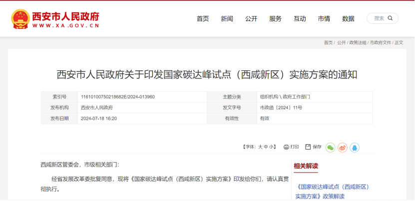 7月19日,西安市人民政府面向西咸新區(qū)管委會(huì),市級(jí)相關(guān)部門印發(fā)《國(guó)家碳達(dá)峰試點(diǎn)(西咸新區(qū))實(shí)施方案》,聚焦綠色低碳發(fā)展的能源和產(chǎn)業(yè)轉(zhuǎn)型瓶頸制約,加快提升能源清潔化利用效率、基礎(chǔ)設(shè)施綠色低碳化水平和減污降碳協(xié)同能力,全面推動(dòng)產(chǎn)業(yè)高質(zhì)量發(fā)展和資源循環(huán)利用。