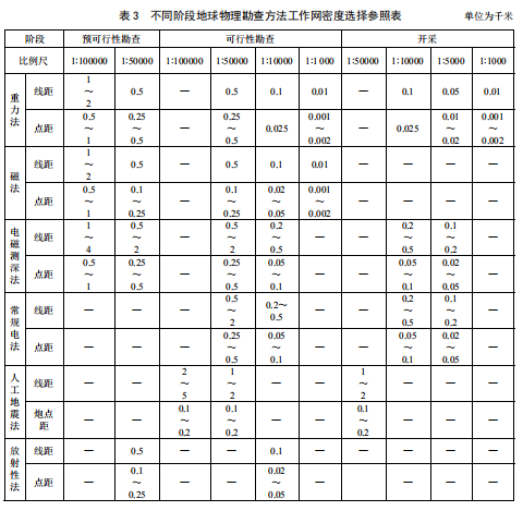 h) 地球物理方法實物工作量應滿足相應比例尺(參見表 3)及探測深度要求;后續涉及鉆探工作的應有異常驗證和再解釋的設計內容。