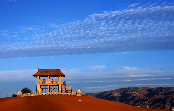 特殊的地理環(huán)境孕育了豐富的旅游資源,在這里,可以看到極具歷史積淀意義的4公里長的明代古長城遺址的宏偉景觀;可以站在湖畔觀賞著多達(dá)15種的沙漠生態(tài)魚和136種鳥類,其中黑鸛、大天鵝、金雕分別屬于國家一、二級(jí)保護(hù)動(dòng)物;可以在水上樂園與湖水親近;可以在遼闊的沙漠草原中縱情馳騁、在金沙島紫色的花海中徜徉;可以在永安寺里尋找片刻的寧靜,在五彩池畔與荷花仙子心靈神匯。騰格里湖沙漠濕地旅游區(qū)溫泉猶如沙漠里的藍(lán)色水晶,如詩如畫的旖旎風(fēng)光,看著格外悅目。