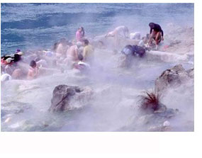 云南滴水河溫泉風景滴水河溫泉以泉群形式出露,出水點散布于滴水河河床及河漫灘上,地表為第四系礫石、砂等沖洪積物覆蓋,滴水河溫泉出露特征高程與躍進橋溫泉和瑪布河溫泉不同,其出露高程為1502.3m,相對較高。