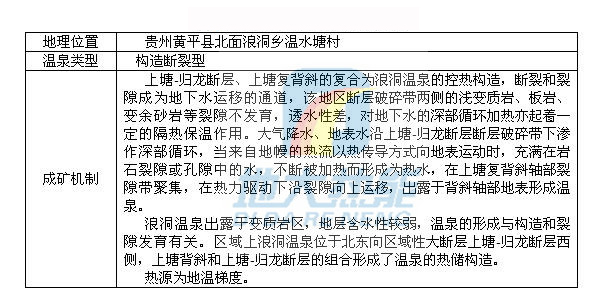 貴州黃平浪洞溫泉風景黃平浪洞森林溫泉度假山莊位于貴州省黔東南州黃平北面浪洞鄉溫水塘村,處于兩州一市交界(黔東南州、黔南州和遵義市),更是處在舞陽河國家級風景名勝區范圍內,具有較好好區位優勢。四周依山傍水,原始植被保存良好,是天然的氧吧。浪洞溫泉在100平方米范圍內由5~7年泉眼平地,噴涌而出,日流量每天1000噸左右。溫泉無色,甜味,井口水溫49℃,根據SI02含量計算,推測靠巖面附近溫度可達60℃,按國家礦泉水溫度分類標準,為高熱礦泉水(42-100℃)。該溫泉地熱水化學類型為HCO3-NA,屬弱堿性(PH=8),低硬度、低礦化度的極軟水,符合飲用水標準。